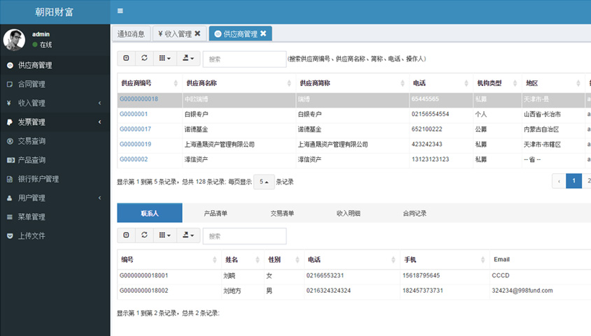 • 合同管理:  供應(yīng)合同管理、合同信息、收入信息等